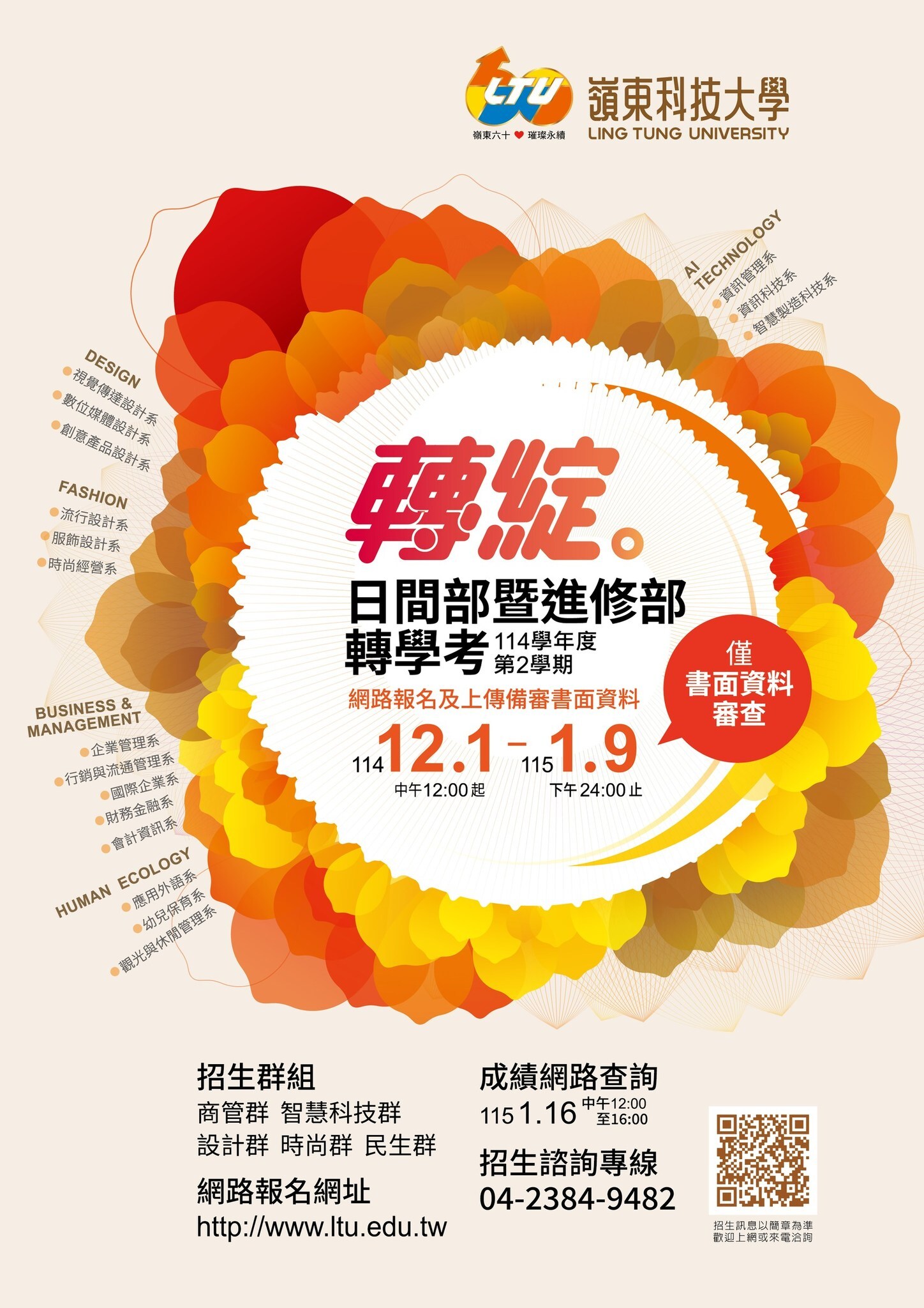 【114 學年度第 2 學期|嶺東科技大學轉學考開放報名!】![]()